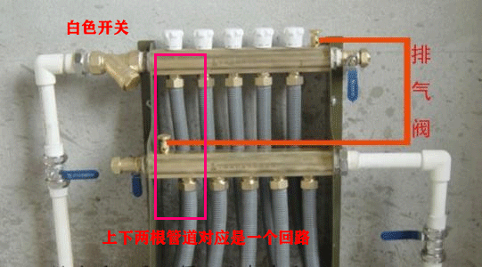 3.排氣時需要一個回路一個回路的排才能把地暖管道內(nèi)的空氣排盡,上下對應的是一個回路,當一路沒有排氣聲,有順暢的水流出就可關閉此回路,進行對下一個回路進行排氣,直到所有的回路排完即可。