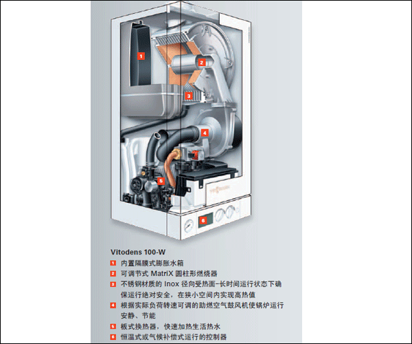 V itodens 100-W是一款由德國(guó)制造、供暖和熱水舒適性強(qiáng), 節(jié)省占用空間和永久時(shí)尚外觀設(shè)計(jì)的燃?xì)饫淠趻焓藉仩t。